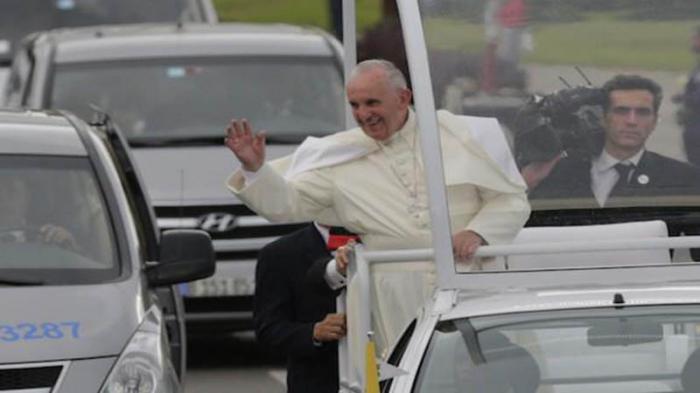 08:47.- El Papa Francisco se detuvo a besar un niño cubano cuando llegaba a la Plaza de la Revolución para efectuar la misa de hoy.