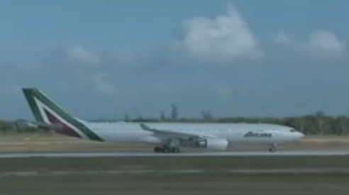 9:13.-El vuelo de Alitalia que transporta al Papa Francisco y su comitiva llegó a Holguín. Acudió a recibirlo el primer vicepresidente de los Consejos de Estado y de Ministros, Miguel Díaz-Canel Bermúdez.