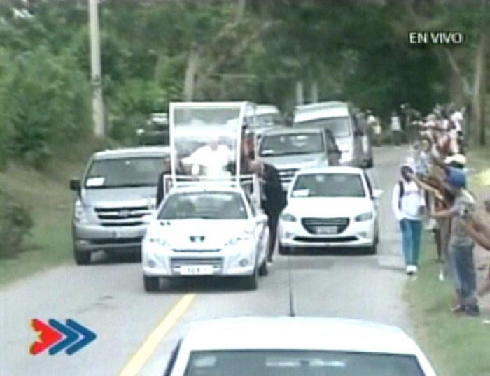 El Papa sale de la Loma de la Cruz en su auto. En breve se dirige hacia el Aeropuerto Internacional de Holguín, desde donde partirá hacia Santiago de Cuba.