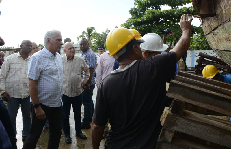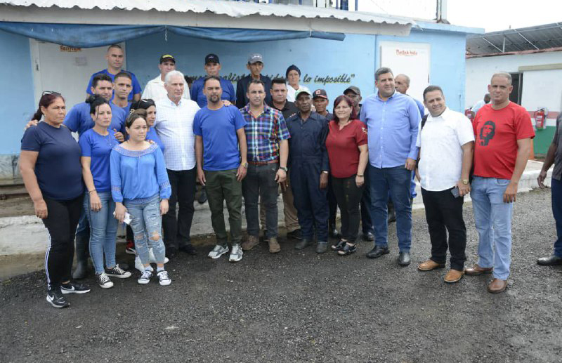 Díaz-Canel se interesó por el salario medio y el pago de utilidades, el quehacer en la minindustria y la reparación de las embarcaciones de madera en el taller de la empresa. (Fuente: ACN)