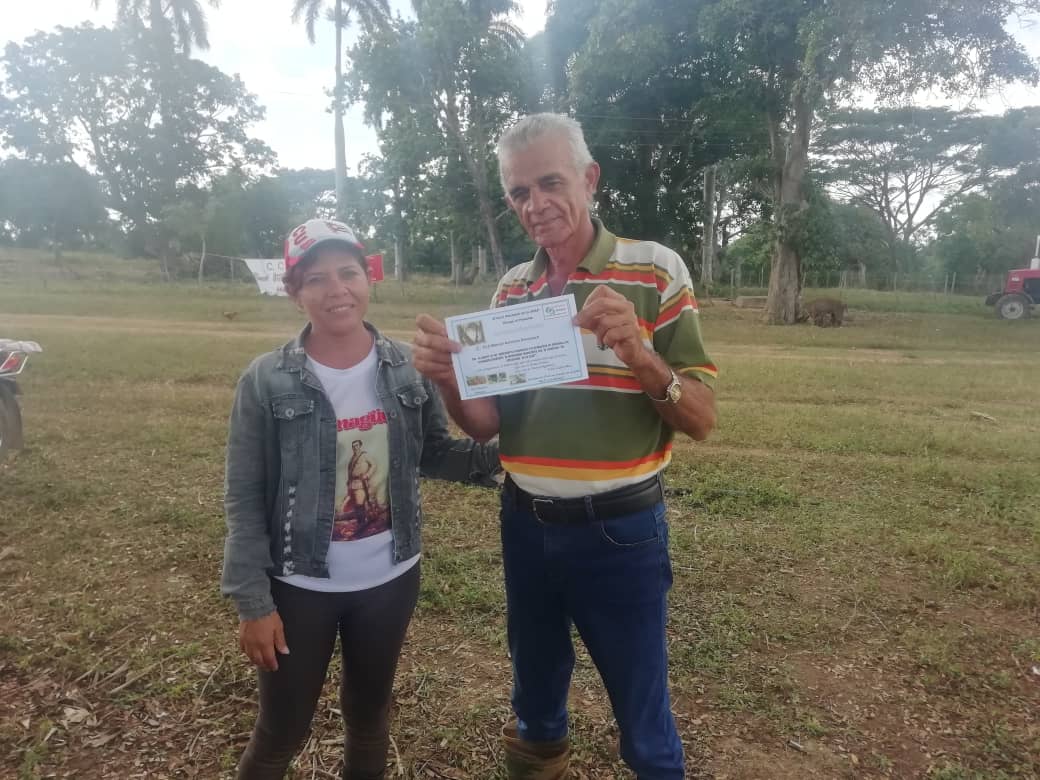 La finca El Trébol, de la Cooperativa de Créditos y Servicios(CCS) José Antonio Echevarría, fue uno de los sitios visitados, donde el campesino Alexey Guerra Camejo recibió con orgullo la condición 65 Aniversario, evidencia del compromiso en la prioritaria tarea de producir alimentos y por una agricultura más sostenible.