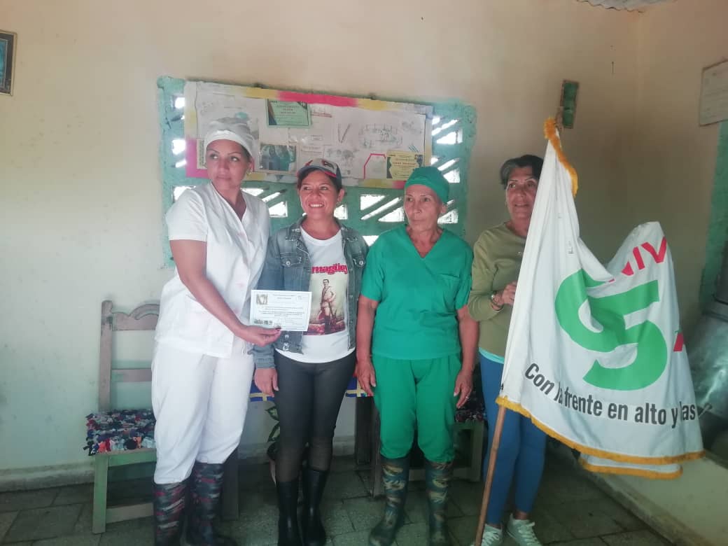El reconocimiento del Buró Municipal de la ANAP también llegó hasta trabajadores del termo de enfriamiento de leche de la cooperativa Manuel Ascunce, unidad que sobrepasó su plan de entrega al finalizar el mes, colectivo que recibió, igualmente, la condición de 65 Aniversario más entregados a la labor del campesinado cubano y con la soberanía alimentaria del país.