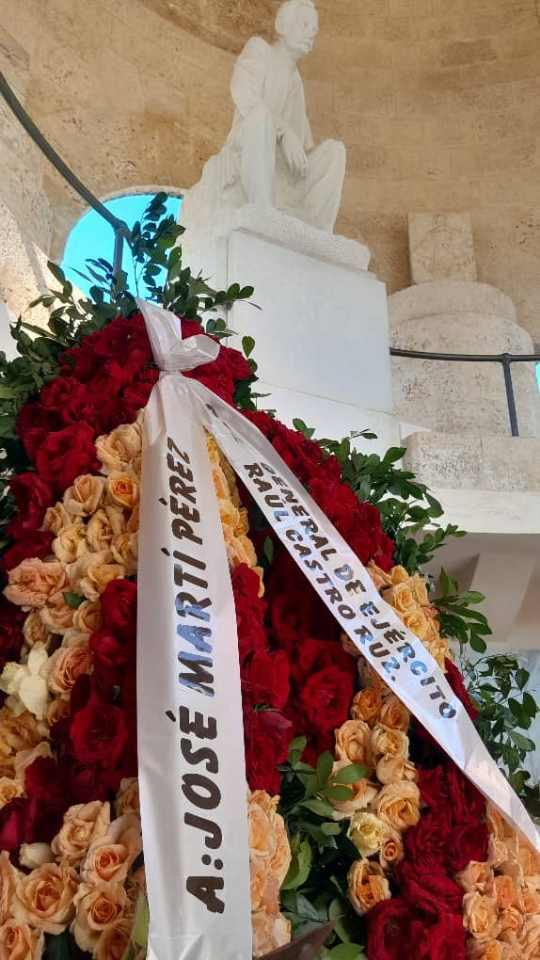 Con melodía a los Versos Sencillos, estudiantes de la Escuela Militar Camilo Cienfuegos de Santiago de Cuba colocaron las ofrendas florales enviadas por el Líder al frente de la Revolución, General de Ejército Raúl Castro Ruz; el Primer Secretario del Comité Central del Partido y Presidente de la República, Miguel Díaz-Canel Bermúdez; y una en nombre del pueblo de Cuba, en este sagrado lugar, ubicado en el cementerio patrimonial Santa Ifigenia.