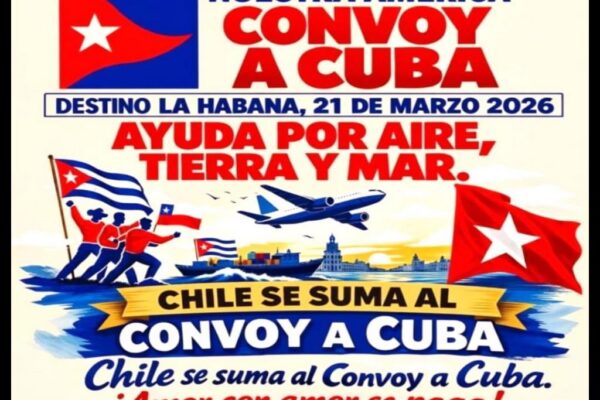 Santiago de Chile, 18 mar.- Un grupo de chilenos viaja hoy a La Habana como parte del convoy Nuestra América que lleva medicinas, insumos y alimentos para ayudar a Cuba ante el recrudecimiento del bloqueo energético impuesto por Estados Unidos.